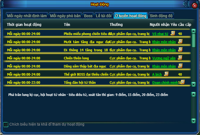Phần thưởng hấp dẫn